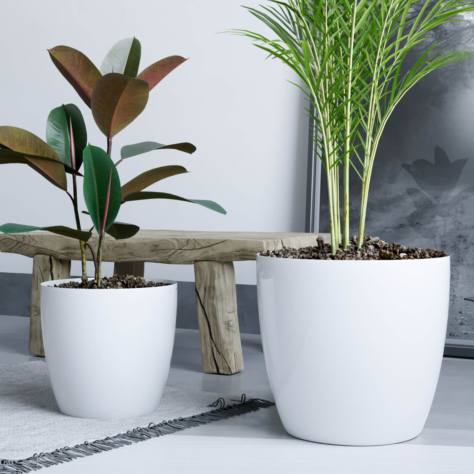 Modelos infaltables para plantas de pequeño y mediano porte, con un diseño anatómico y minimalista. Poseen una terminación brillante y una gama clásica de colores. Ideales para generar grandes composiciones o también utilizarlas individualmente en interiores y exteriores.
