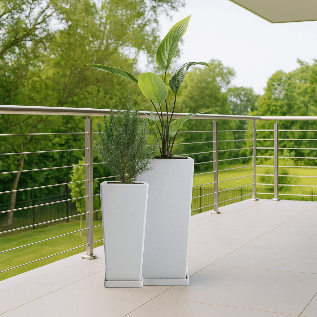 Set De Macetas Línea Piramidal 45 y 55 Con Plato