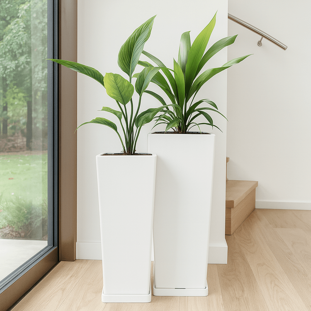Set De Macetas Línea Piramidal 55 y 70 Con Plato